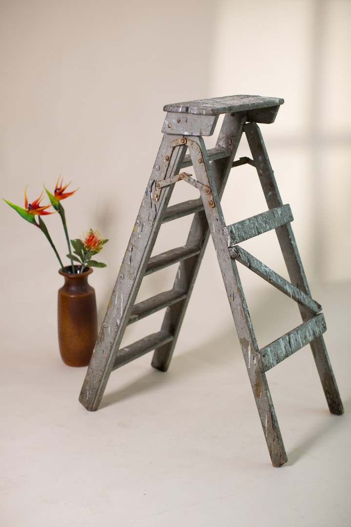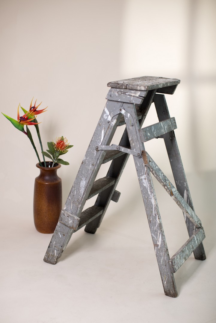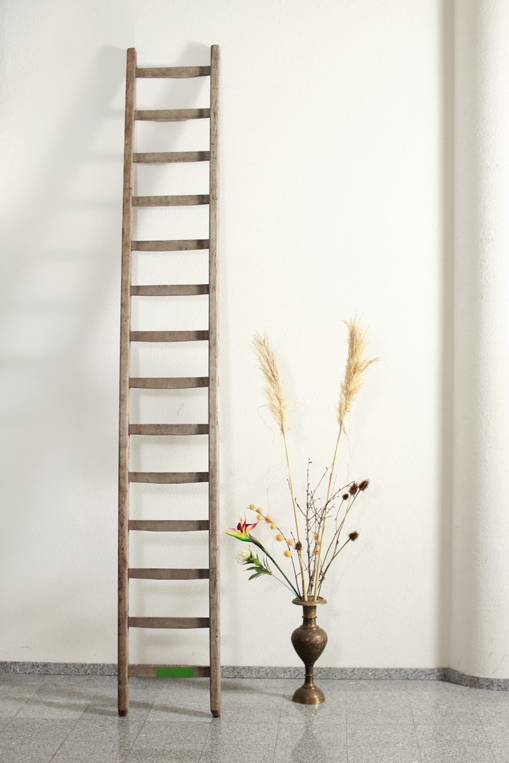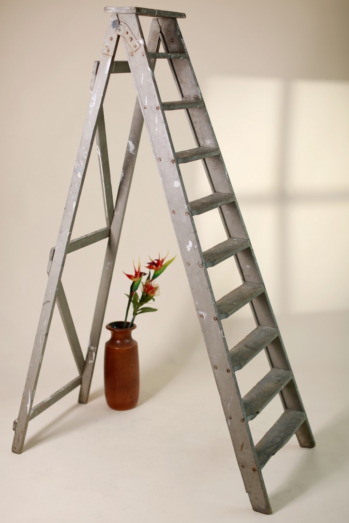 Wij verhuren houten ladders en trappen voor decoratieve doeleinden.